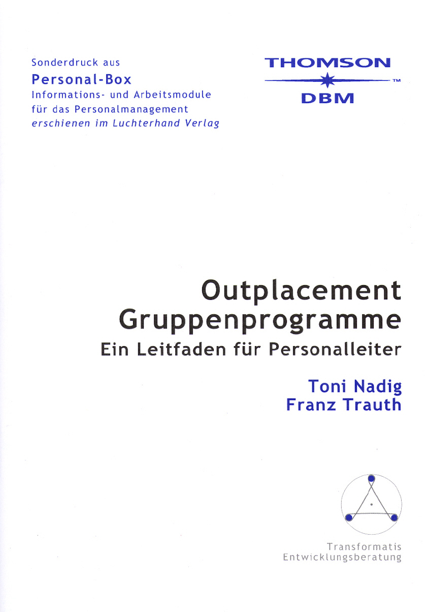 Outplacement. Gruppenprogramme. Ein Leitfaden für Personalleiter. In: Personal-Management-Box. Informations- und Arbeitsmodule für das Personalmanagement. Luchterhand Verlag, Köln 2003, Seiten 1-21.
